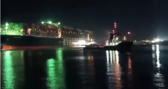 بدء مناورات قطر السفينة العالقة في القناة.